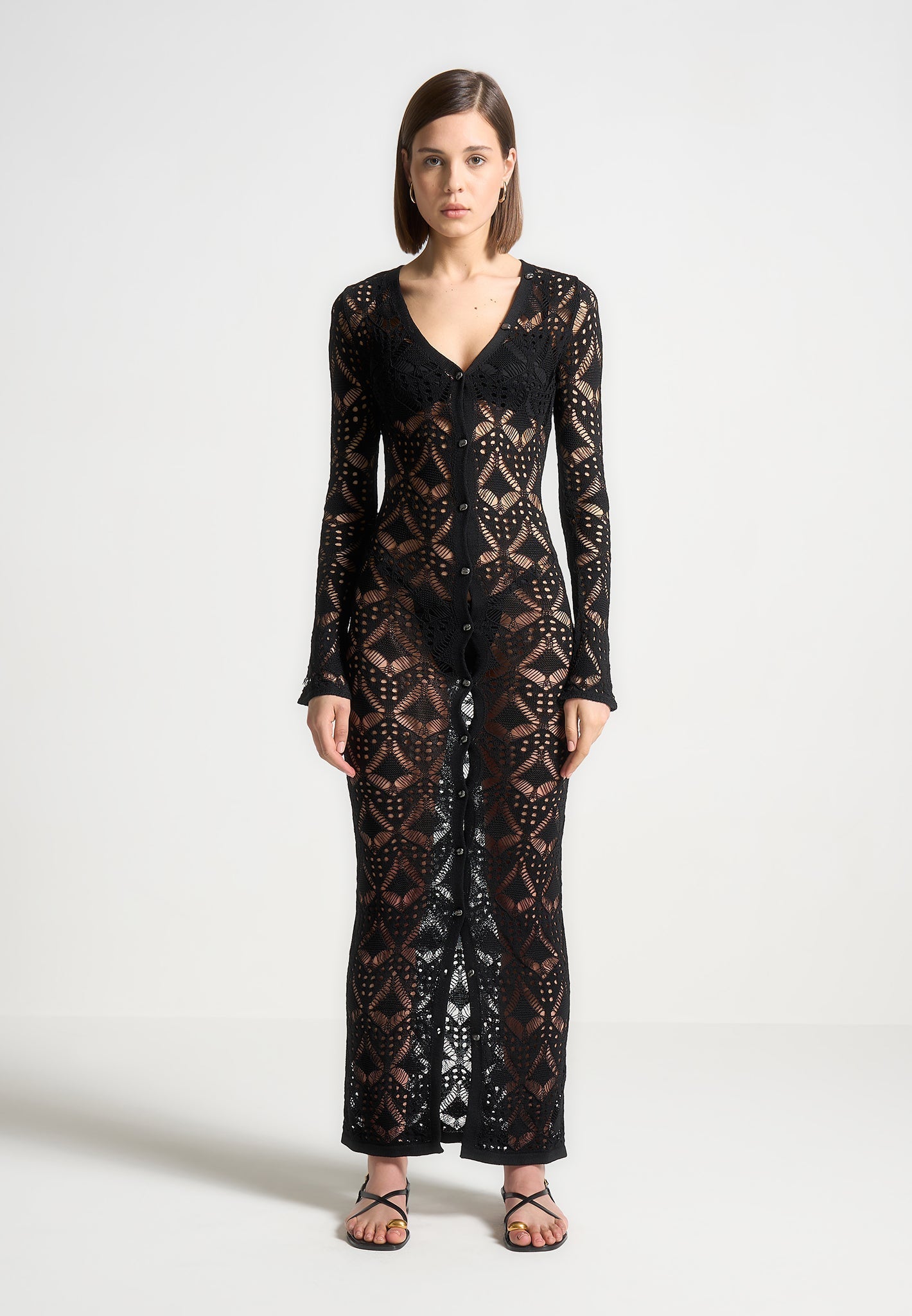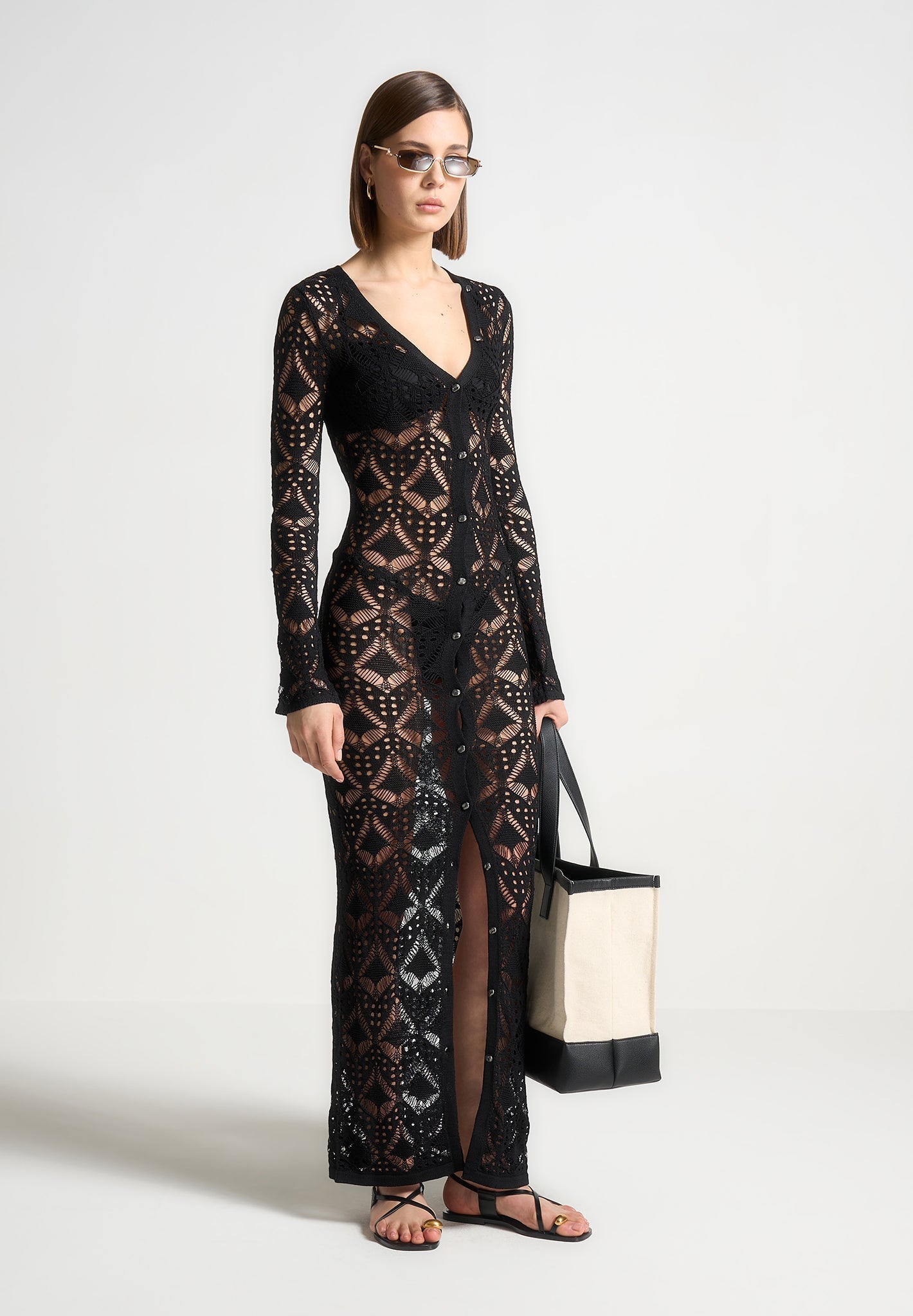 This black longline cover up is lightweight and perfect for a day at the beach. Featuring a button down design, it provides the perfect blend of style and comfort for your beach outings. Make a statement with this longline cover up.